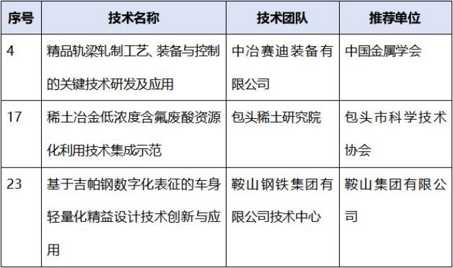 榜單發布先導技術榜150項、新銳企業榜50項、融通創新組織榜10項、技術經理人先鋒榜20項,共計230項入榜項目。其中,多家鋼鐵相關企業上榜!