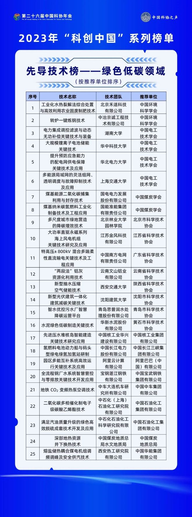 先導技術榜——綠色低碳領域(鋼鐵相關)