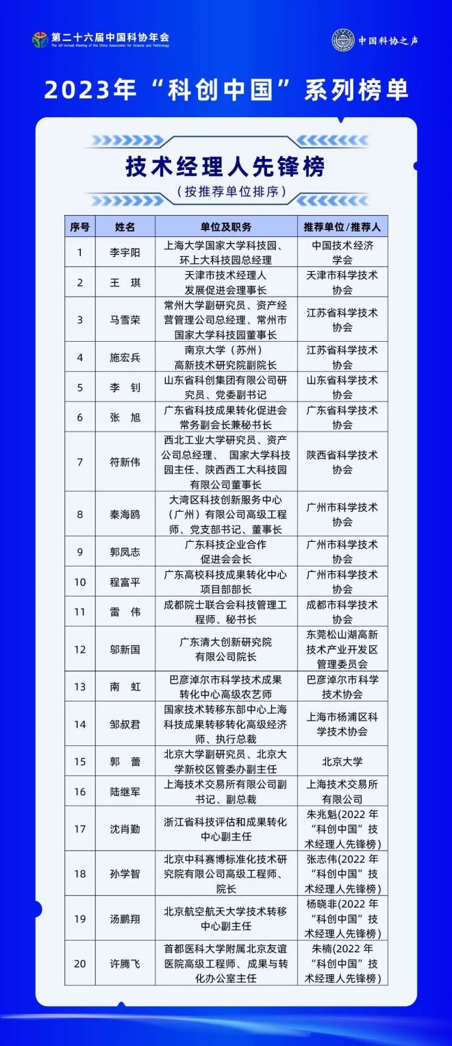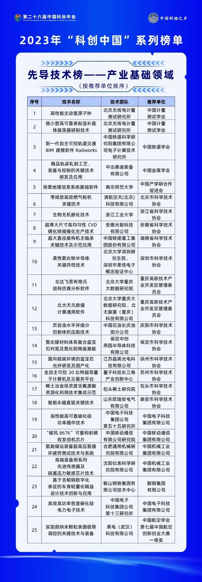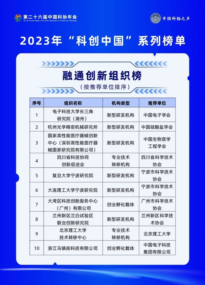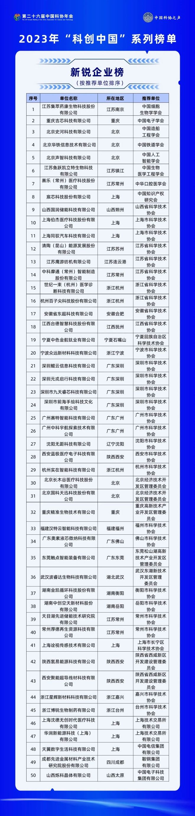 第二十六屆中國科協年會上,中國科協正式發布2023年“科創中國”系列榜單。