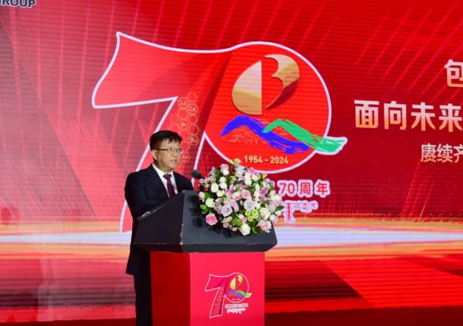 何文波在致辭中表示,作為新中國成立后最早建設(shè)的鋼鐵工業(yè)基地之一,包鋼不僅扛起了滿足國防經(jīng)濟(jì)建設(shè)需求、改變內(nèi)蒙古無鐵無鋼歷史的重大責(zé)任,還肩負(fù)著開創(chuàng)我國民族地區(qū)工業(yè)先河、促進(jìn)民族團(tuán)結(jié)進(jìn)步的光榮使命。包鋼誕生于新中國百廢待興、百業(yè)待舉之時(shí),填補(bǔ)了70年前西部地區(qū)鋼鐵工業(yè)的空白。70年來,包鋼在實(shí)現(xiàn)企業(yè)發(fā)展目標(biāo)的同時(shí),為優(yōu)化中國鋼鐵行業(yè)產(chǎn)業(yè)布局和技術(shù)體系做出了重要貢獻(xiàn),成為中國現(xiàn)代化鋼鐵體系的關(guān)鍵力量和重要基石。