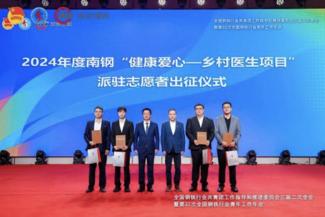 開幕式現(xiàn)場還舉行了2024年度南鋼“健康愛心—鄉(xiāng)村醫(yī)生項目”派駐志愿者出征儀式,南鋼第七批“星光合伙人”駐點隊員接過隊旗。自2018年以來,在國家衛(wèi)健委鄉(xiāng)村振興辦等部門的指導下,在復星基金會的大力支持下,南鋼積極推進鄉(xiāng)村醫(yī)生項目的開展,連續(xù)7年派出33位青年參與到基層鄉(xiāng)村的健康振興工作當中,至今已幫扶貴州習水縣、安徽金寨縣、山西大寧縣、寧夏紅寺堡縣、新疆吉木乃縣、江西樂安縣、江西廣昌縣、江西于都縣等15個偏遠地區(qū)。