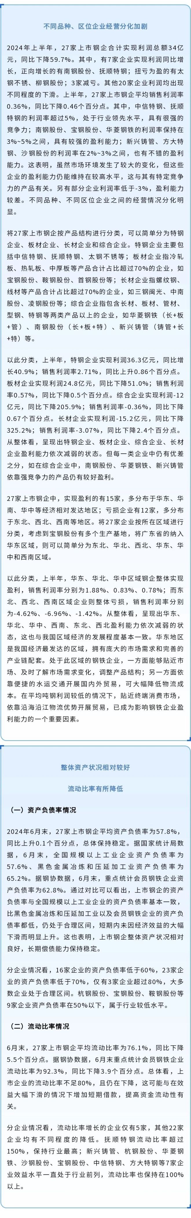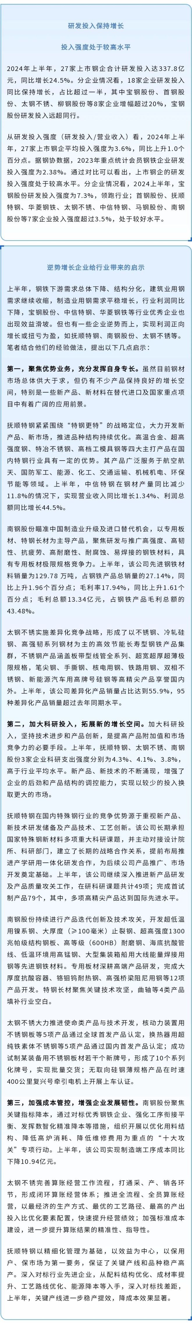 從2024年上半年國內重點上市鋼企經營狀況看盈利關鍵詞:發揮優勢 強化研發 管控成本
