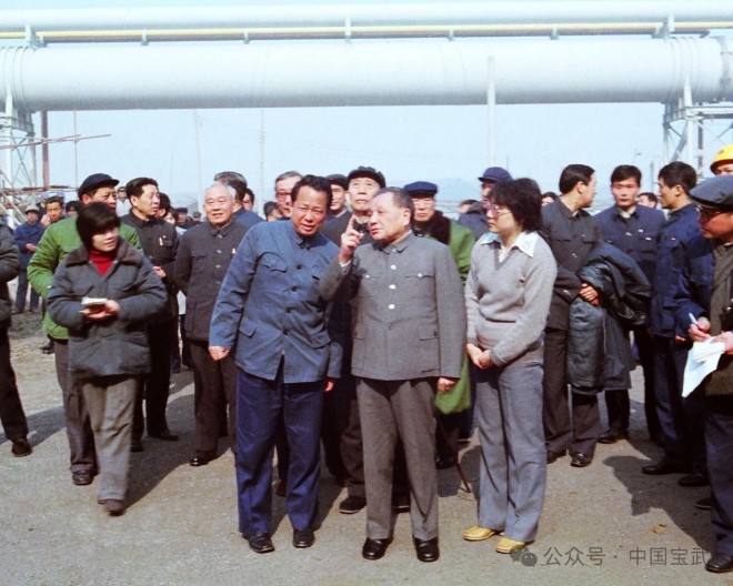 1984年2月,黎明陪同小平同志在寶鋼一高爐工地視察