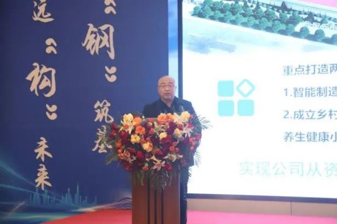 王向東在致辭中介紹,山鋼萊鋼在鋼結構建筑領域起步早、發展快、績效多,擁有多個全國之最和第一。今年,萊鋼落實山鋼“四大戰役”決策部署,實施百億元投資、千億元產值、萬人就業的“百千萬”工程,打造“四大工業園區”,全面激活萊鋼。其中,致力于建成全國最專業的數智化綠色鋼結構建筑產業園示范區——綠色鋼構建筑產業園的建設就是其中內容之一。