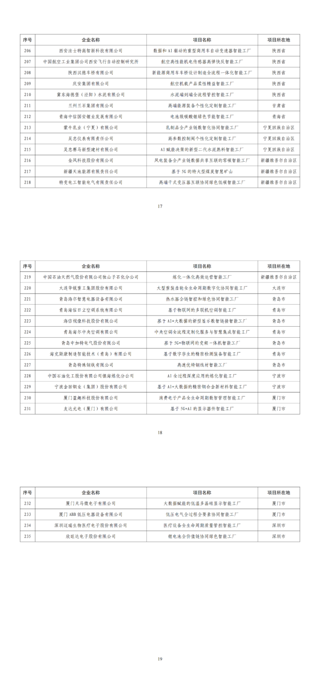 卓越級智能工廠(第一批)項目公示名單