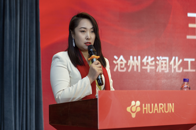 圖為滄州華潤化工銷售部負責人王麗彤代表優秀員工發言。