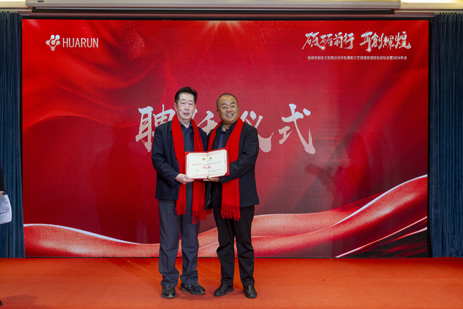 會上舉行2024年度華潤化工優秀員工獎、成長突破獎和突破貢獻獎以及服務部團隊獎的頒獎儀式。朱召作為獲獎代表在會上發言。