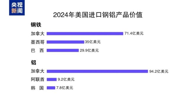 據美國消費者新聞與商業頻道報道,按總額計算,美國最大的鋼鐵進口國依次是加拿大、墨西哥和巴西;最大的鋁供應國分別是加拿大、阿聯酋和韓國。
