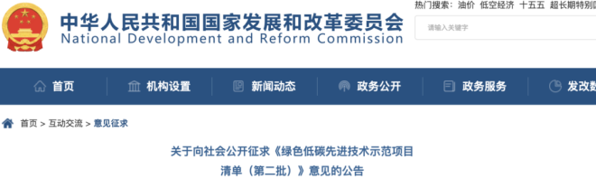 近日,國家發展改革委向社會公開征求《綠色低碳先進技術示范項目清單(第二批)》意見。