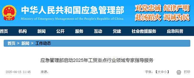 為深入落實工貿安全生產治本攻堅三年行動任務,防范化解重大安全風險,助力企業安全發展,應急管理部近日啟動2025年工貿重點行業領域專家指導服務工作。