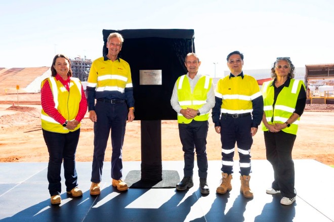 當地時間6月6日上午,寶武與力拓集團聯合開發的西坡鐵礦項目全面建成投產,標志這一中澳重大資源合作項目進入全面運營階段。寶武董事長胡望明出席在澳大利亞西澳州舉行的投產儀式并致辭。西澳州州長羅杰·庫克(Hon Roger Cook),澳大利亞資源部長瑪德琳·金(Madeline King),中國駐珀斯總領館總領事龍定斌,中國駐澳洲大使館公參高峰,力拓集團首席執行官石道成(Jakob Stausholm),以及原住民代表等項目各相關方共同見證這一重要時刻。