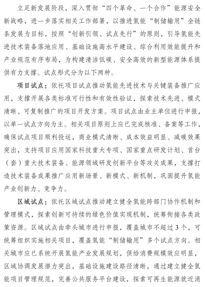其中提出,以推進氫能“制儲輸用”全鏈條發展為目標,按照“創新引領、試點先行”的原則,引導氫能先進技術裝備落地應用、基礎設施高水平建設、綜合利用效能提升和產業規范有序布局,為構建清潔低碳、安全高效的新型能源體系提供有力支撐。