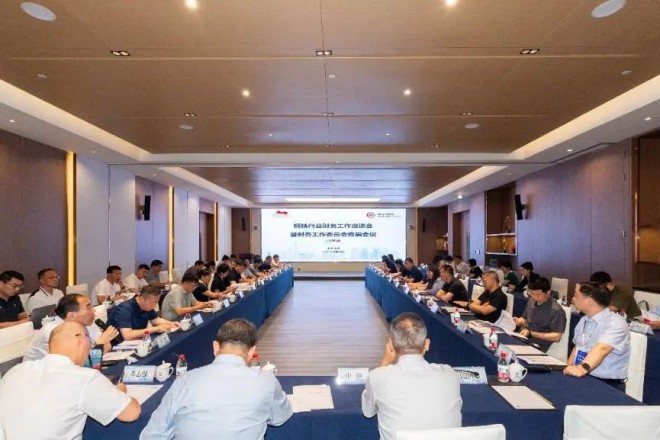 鋼協(xié)黨委常委、副會(huì)長(zhǎng)唐祖君,南鋼集團(tuán)有限公司黨委副書記、總裁姚永寬,鞍山鋼鐵集團(tuán)有限公司副總經(jīng)理、總會(huì)計(jì)師李景東,中國(guó)礦產(chǎn)資源集團(tuán)有限公司財(cái)務(wù)部總經(jīng)理靳延兵,河鋼集團(tuán)有限公司總會(huì)計(jì)師胡志剛,太原鋼鐵(集團(tuán))有限公司副總經(jīng)理劉鵬飛,沙鋼集團(tuán)有限公司總會(huì)計(jì)師尉國(guó),中信泰富特鋼興澄特鋼總會(huì)計(jì)師陶士君,河南鋼鐵集團(tuán)有限公司黨委副書記、副總經(jīng)理、工會(huì)主席王偉,中國(guó)鋼研科技集團(tuán)有限公司總會(huì)計(jì)師榮巖,南京鋼鐵股份有限公司總會(huì)計(jì)師、財(cái)務(wù)部部長(zhǎng)梅家秀,鞍鋼集團(tuán)本鋼集團(tuán)有限公司資本財(cái)務(wù)部總經(jīng)理王東暉,三鋼(集團(tuán))有限責(zé)任公司總經(jīng)理助理、資產(chǎn)財(cái)務(wù)部經(jīng)理肖紹康,柳州鋼鐵股份有限公司總會(huì)計(jì)師石柳元,敬業(yè)集團(tuán)有限公司財(cái)務(wù)副總經(jīng)理鳳維富等領(lǐng)導(dǎo)出席會(huì)議。會(huì)議由鋼協(xié)副秘書長(zhǎng)兼產(chǎn)業(yè)運(yùn)行部主任陳玉千主持。冶金工業(yè)經(jīng)濟(jì)發(fā)展研究中心黨委書記、主任李擁軍,冶金工業(yè)信息中心黨總支書記、主任付靜,以及各鋼鐵企業(yè)和鋼協(xié)代管單位財(cái)務(wù)工作負(fù)責(zé)人、財(cái)務(wù)工作委員會(huì)委員等共150余人參加了會(huì)議。