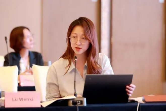 圖為鋼協規劃發展部副處長余璐介紹中國在東盟鋼鐵投資情況、供給側結構性改革情況