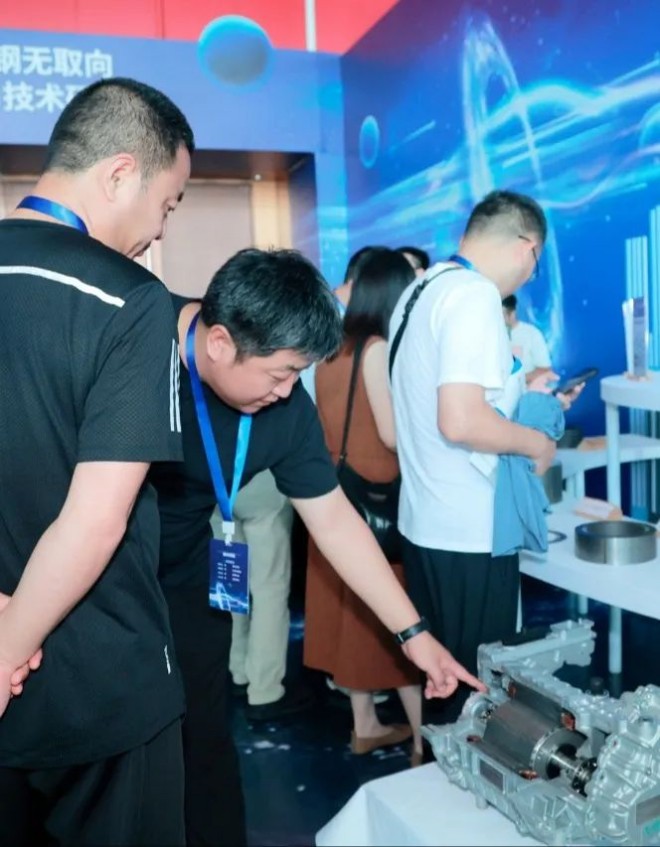 此外,本次大會還帶來了首鋼智新最新的技術成果。首創燕尾&逆向過盈技術,顛覆性設計開辟電機性能提升“第二曲線”,不僅從根本上解決了鐵芯套機殼過程中鐵損嚴重惡化的難題,且有助于鐵損改善提升,可顯著提升電機性能。該技術還可以與自粘結和退火技術疊加應用,可將電機綜合性能推向新維度,為突破電機性能極限,開辟了全新的技術路線。首創薄膜厚高粘接性自粘結涂層技術,實現同等膜厚下粘接強度提升50%;同等粘接強度下膜厚減薄30%,進一步提升快速自粘結在新能源汽車電機領域的適用性,將為超靜音、高效率和極致穩定的新能源汽車提供全新的材料技術支撐。