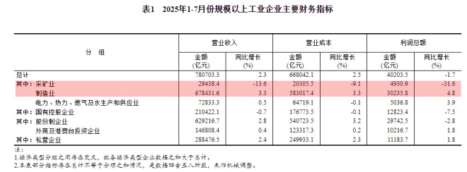 8月27日,國家統計局發布文章,公布了2025年1—7月份全國規模以上工業企業利潤相關數據。
