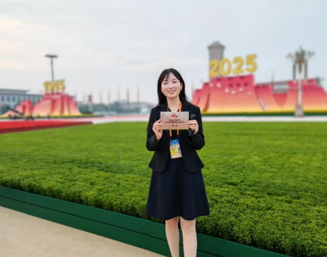圖為《中國冶金報》記者在觀禮現場