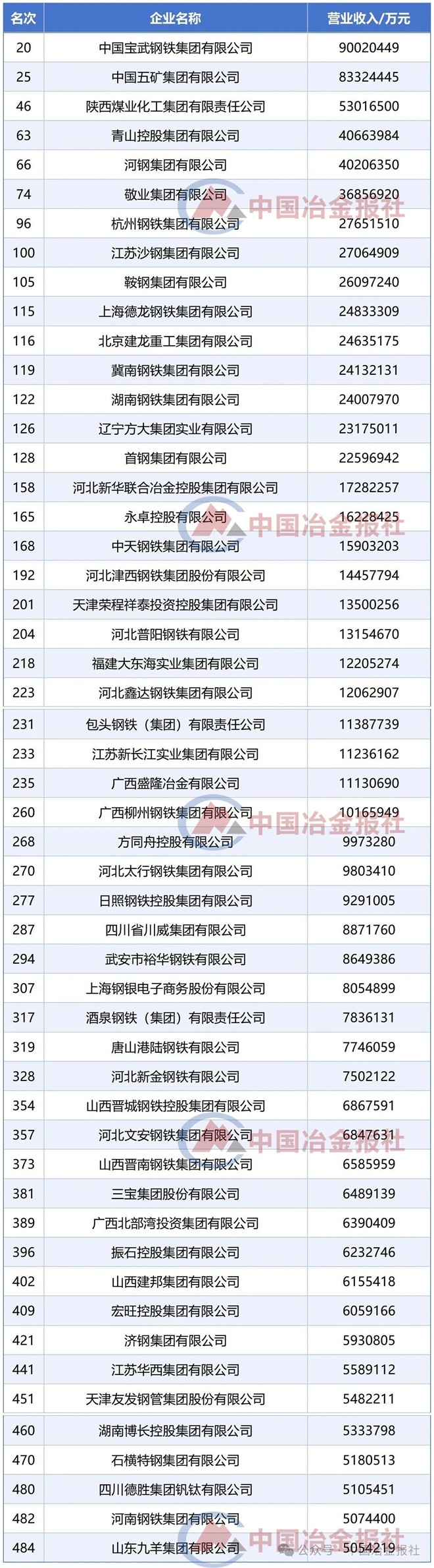其中,多家鋼鐵冶金相關(guān)企業(yè)上榜!