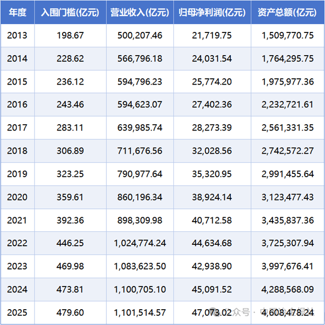據(jù)悉,“2025中國企業(yè)500強”的入圍門檻實現(xiàn)23連升,達(dá)479.60億元,較上年提高5.79億元;實現(xiàn)營業(yè)收入110.15萬億元,較上年有所增加;實現(xiàn)歸屬母公司凈利潤4.71萬億元,增長4.39%。位列前10位的企業(yè)是:國家電網(wǎng)有限公司、中國石油天然氣集團有限公司、中國石油化工集團有限公司、中國建筑股份有限公司、中國工商銀行股份有限公司、中國農(nóng)業(yè)銀行股份有限公司、中國建設(shè)銀行股份有限公司、中國銀行股份有限公司、中國鐵路工程集團有限公司、京東集團股份有限公司。