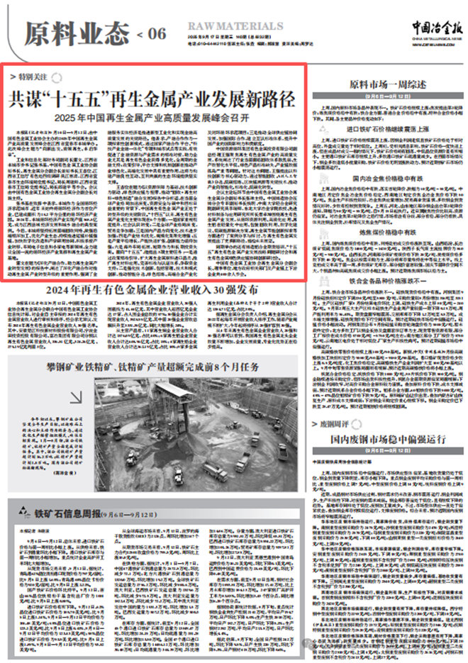9月10日—9月12日,由中國有色金屬工業協會主辦的2025年中國再生金屬產業高質量發展峰會在江西省宜春市豐城舉辦。此次峰會主題為“向新出發、質領再生、豐啟華章”。
