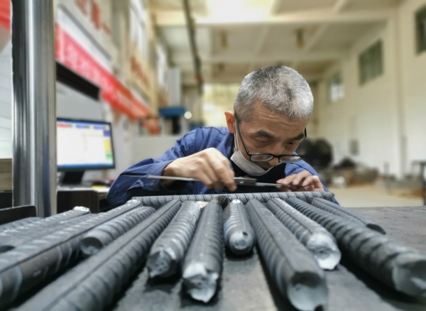 今年以來,新余鋼鐵集團有限公司檢測中心以質量為中心,以綜合大檢查為手段,以績效考核為杠桿,突出問題導向,強化目標落實,進一步提升一線職工服務意識和精品意識,助推了數智新鋼高質量發展。圖為質檢員在對螺紋鋼進行力學性能測試時情景。(張俊攝)