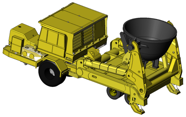 該項目是在以往出口項目的基礎上,根據售后運行反饋的情況進行消化,對結構、動力、控制、布局以及散熱性能進行集中改進及優化精心設計而成。在結構方面:一是改進了支腿結構,將之前中間固定耳軸式改為后端固定耳環式,簡化了設計;二是調整液壓油箱的方位,讓上下車更加便利。在動力方面:為滿足大臂收縮的速度與效率,采用了雙泵合流的技術方案。在控制方面:對負載敏感壓力增加電比例調節功能,改善啟停時的沖擊和嘯叫的隱患能力。在布局方面,繼續保持集中布局的理念,且進一步在維修的方便性及安全性上下功夫。在散熱性能上,借用U型車項目驗證過的成熟經驗,增加獨立的電控風冷回路,以滿足前橋高負荷運行的散熱需求。