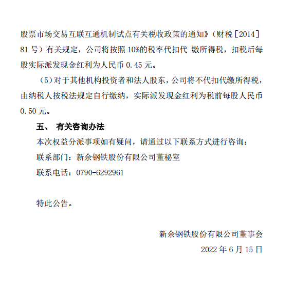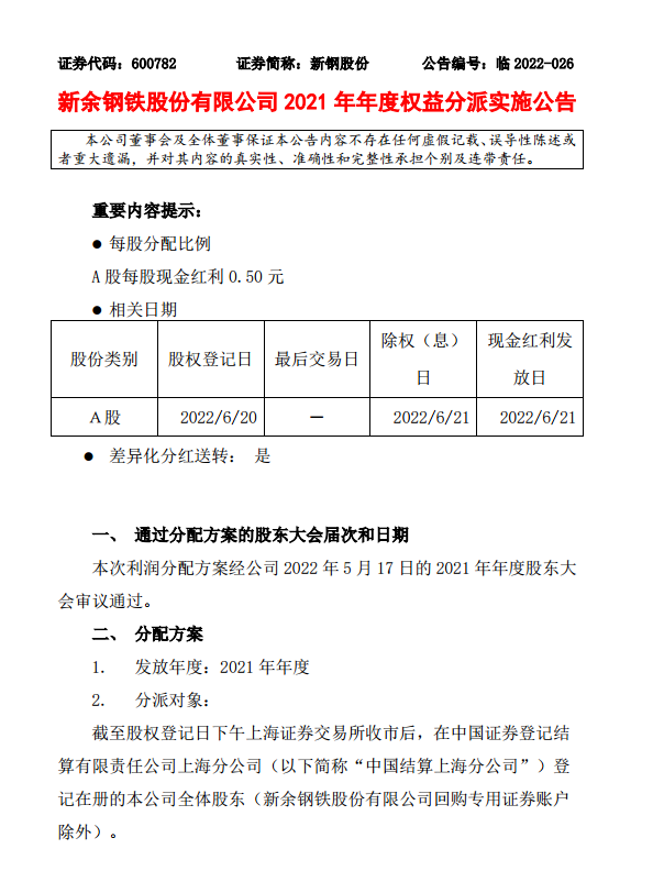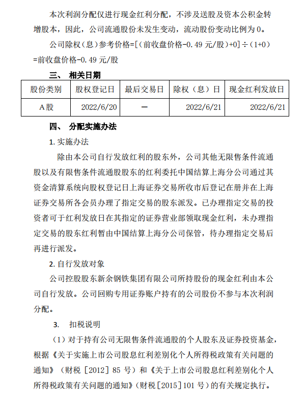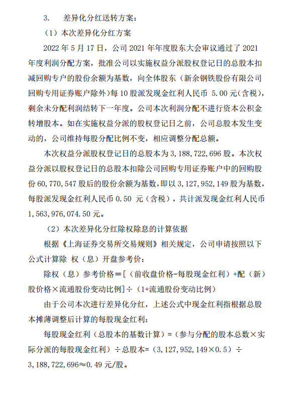 新鋼股份2021年度權(quán)益分派實(shí)施公告