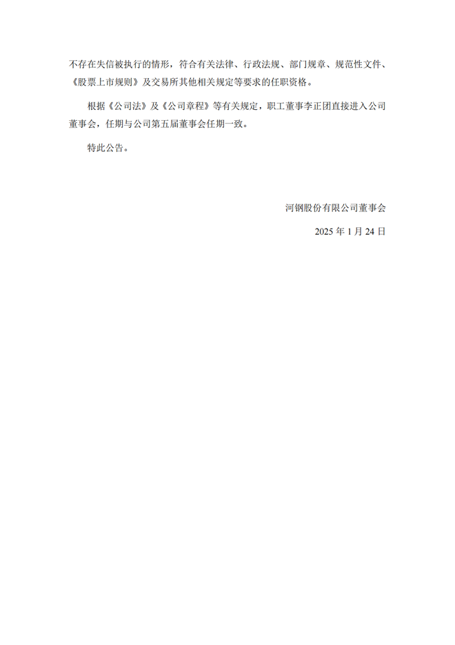 河鋼股份:關于職工董事辭職及補選職工董事的公告