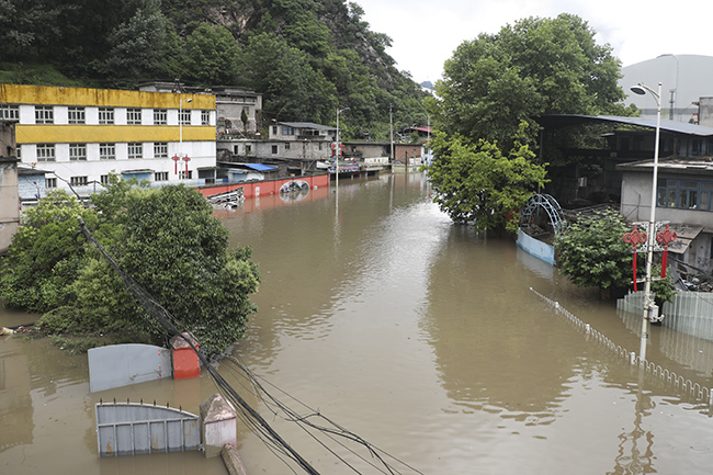 水鋼廠區(qū)肖家寨路段被淹現(xiàn)場。