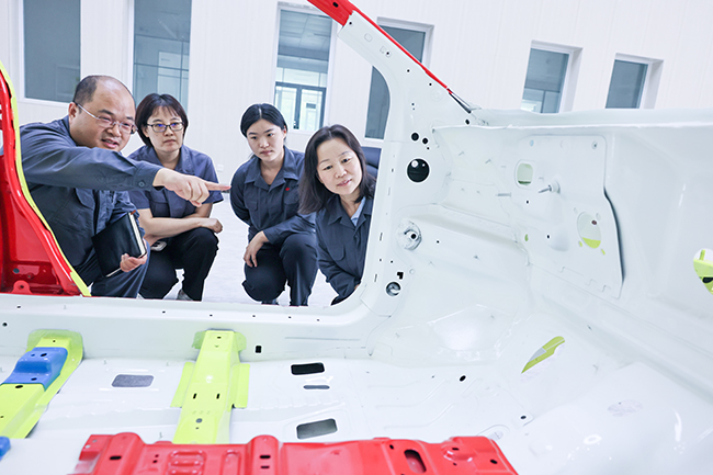 7月5日,山鋼日照研發人員正對用牌號為DX57D+Z的IF鋼沖壓成的汽車外殼進行討論(如圖)。6月份,該公司技術團隊經過多次試驗,成功研發國內汽車用最高沖壓等級IF鋼。據了解,DX57D+Z鋼屬于鍍鋅特超深沖IF鋼最高級別牌號,成型性能優異,主要用于汽車內外板等變形復雜的汽車零部件制作,具有力學性能良好、整卷性能均勻、鍍層抗粉化能力強等特點。(特約通訊員 郭陽 攝)