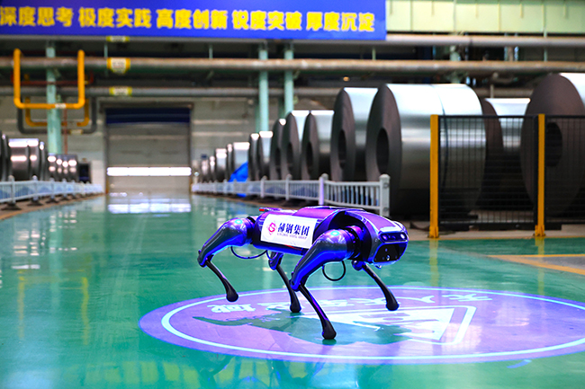 傳統(tǒng)鋼廠巡檢工頭戴安全帽、手持檢測儀深入生產(chǎn)現(xiàn)場的畫面,正在被新的場景取代。11月4日,在廣西鋼鐵集團(tuán)(柳鋼防城港基地)冷軋廠車間,一只機(jī)器狗正自如地行走在無人天車區(qū)域,執(zhí)行設(shè)備巡檢任務(wù)(如圖)。這是該廠繼部署25套機(jī)器視覺系統(tǒng)、24臺(tái)產(chǎn)線機(jī)器人、12臺(tái)5G遠(yuǎn)控及無人行車后,在“數(shù)智化+精益化”深度融合上的又一創(chuàng)新實(shí)踐——通過具備自主導(dǎo)航與AI(人工智能)識(shí)別能力的機(jī)器狗,實(shí)現(xiàn)高危區(qū)域巡檢的完全無人化,以科技創(chuàng)新 推動(dòng)生產(chǎn)效率和產(chǎn)品質(zhì)量提升。(本報(bào)記者 顧學(xué)超 攝)