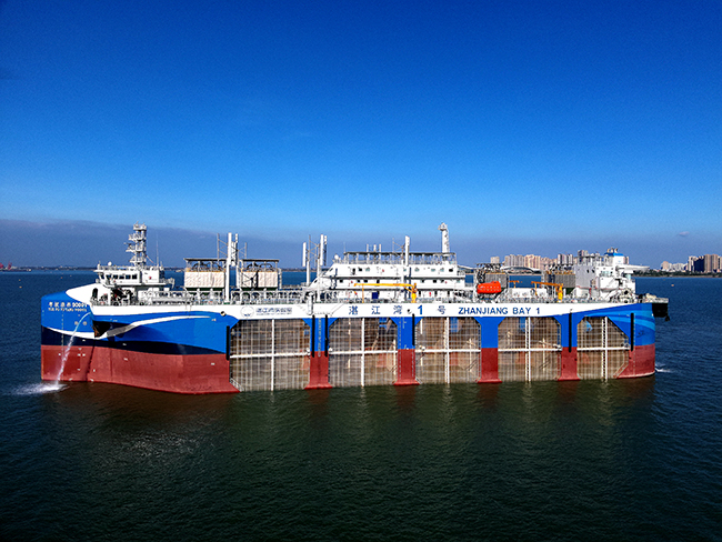 11月5日,全球首創漂浮式動力定位養殖網箱型工船試驗平臺“湛江灣1號”駛入湛江招商國際郵輪港碼頭并安全靠泊(如圖)。據悉,這艘被稱為“海上移動牧場”的“鋼鐵巨鯨”,平臺總長為154米,總寬為44 米,養殖水體達8萬立方米,分為12個獨立的養殖區域,能夠同時養殖多種魚類。作為深海重器,“湛江灣 1號”適用于南海千米乃至萬米水深的全海域養殖,極大拓寬海水養殖的生產空間。據了解,“湛江灣1號” 用鋼100%來自寶鋼股份湛江鋼鐵。(王推陳 攝)