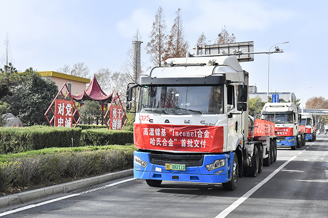 12月1日,河南鋼鐵集團安陽基地高溫鎳基合金首批交付,滿載Inconel合金與哈氏合金的車隊隨發車指令駛出(如圖)。據了解,此次交付的Inconel合金被譽為航空航天領域的“耐高溫衛士”,在航天器關鍵部件、核能反應堆核心組件以及化工極端環境設備中發揮著不可替代的作用;而哈氏合金則以鎳鉬鉻合金為基體,憑借其卓越的耐腐蝕性能,榮膺“鎳基 耐蝕合金之王”的美譽,是石油化工、海洋工程等高端領域的核心材料。安陽基地技術團隊與生產人員歷經無數次工藝優化和試驗驗證, 最終攻克技術瓶頸,實現產品的穩定生產與高品質交付。(特約通訊員 常達 攝)