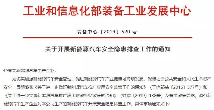 這是自去年9月先后印發《關于開展新能源客車安全隱患專項排查工作的通知》和《關于開展新能源乘用車、載貨汽車安全隱患 專項排查工作的通知》以來,工信部下發的第三份關于新能源汽車安全隱患排查的文件。