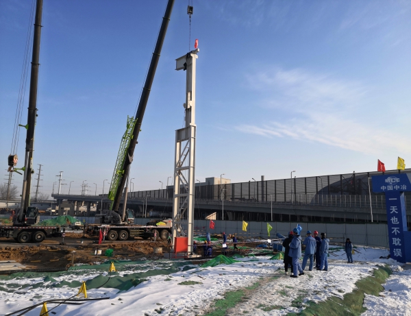 此次吊裝的主廠房為單層門式鋼框架結構,軸線長度480m,跨度達96m,建筑面積435000㎡,其中鋼結構工程量約7000噸。鋼柱為門式格構柱,柱高約25米,柱距為15米,基礎為杯口基礎。自2019年11月18日開工以來,面對工期緊、鋼結構體量大及柱基礎施工期間處于北方冬季等諸多困難,項目部編制科學的施工組織設計和冬季施工方案,對現場土建基礎施工、冬季施工質量控制、吊裝次序等都作出了明確的安排部署。截止目前,已先后施工完成管井降水、基坑開挖土方兩萬兩千方、柱基礎承臺混凝土澆筑兩千四百方。此次鋼結構柱順利吊裝,為太鋼高端冷軋取向硅鋼項目的穩步推進作出了有力保障。