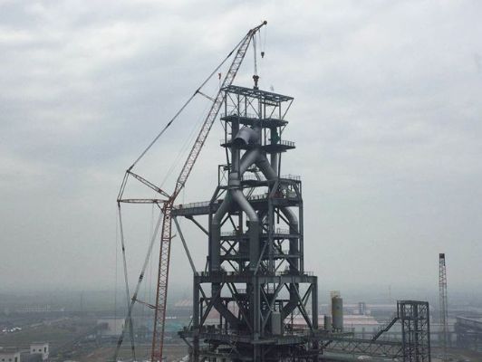 河北樂亭鋼鐵項目3#高爐爐體容積達3000立方米,高度110.01米,本體鋼材用量約3060噸。為確保高爐順利封頂,項目部組織各部門進行方案評審,各部門各專業對施工人材機、作業條件、工藝流程、施工要點等反復推敲,根據現場實際情況,認真測量數據。面對疫情導致的工期延誤,項目部克服重重困難,精心組織施工,合理安排工期,科學調配資源,積極開展“大干一百天”勞動競賽,迅速掀起大干熱潮,順利完成了高爐封頂任務。