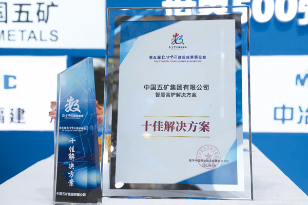 圖為中冶南方“智慧高爐解決方案”入選數字中國建設峰會“十佳解決方案”。