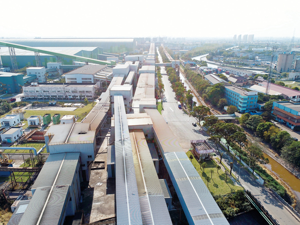 圖為寶鋼股份寶山基地原料輸入系統(tǒng)超低排改造后航拍圖。