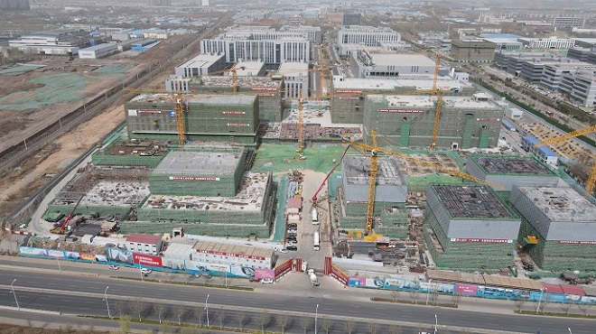 電子信息科創園項目位于山東省淄博市張店區,施工內容包括地上4 號、5 號、6 號廠房,市政配套工程,綠化工程,地下室等,建筑面積約7.5萬平方米。包含項目規劃范圍內所有建筑單體、園區內道路、綜合管線及附屬設施等所有工程的測繪、勘察、規劃、設計、采購、施工、驗收、配合完成移交及保修等全過程工程總承包。自項目開建以來,項目部克服了高溫酷暑、資金短缺、疫情等諸多困難,精心組織現場施工,掛圖作戰,有力有序推進項目建設進度,確保按節點完成目標任務。