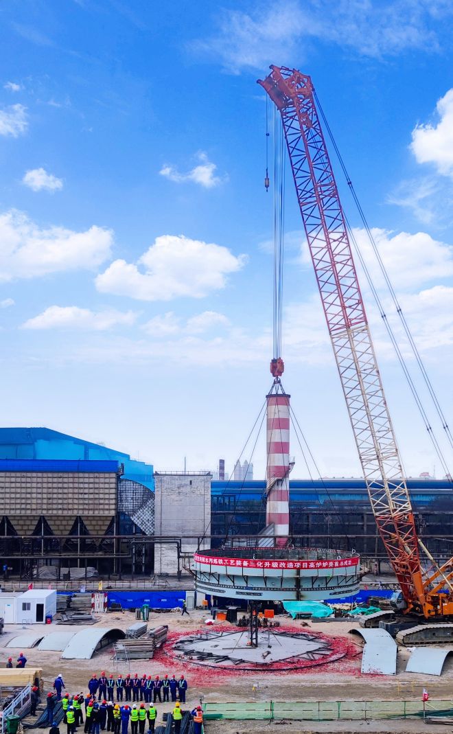 4月1日上午10時18分,由中國五冶集團工程總承包公司承建的甘肅酒鋼集團本部煉鐵工藝裝備三化升級改造項目高爐主體工程順利完成第一帶高爐爐殼吊裝,標志著高爐本體鋼結(jié)構(gòu)安裝正式拉開序幕。