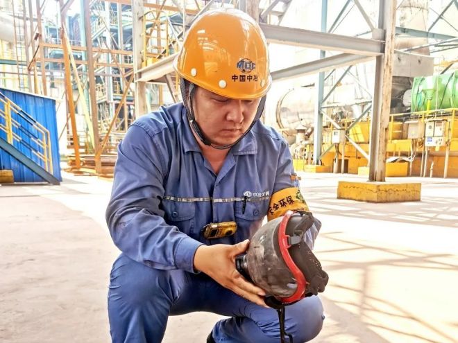 “呼吸器外觀整潔無油污、減壓閥閥口無變形和斷裂、空氣瓶壓力在標準值……”在煉鋼轉爐電除塵內部檢查維修項目現場,徐善斌正在逐條檢查空氣呼吸器的各項指標??諝夂粑魇怯邢蘅臻g作業的關鍵的應急設備,也是徐善斌重點檢查的裝備。