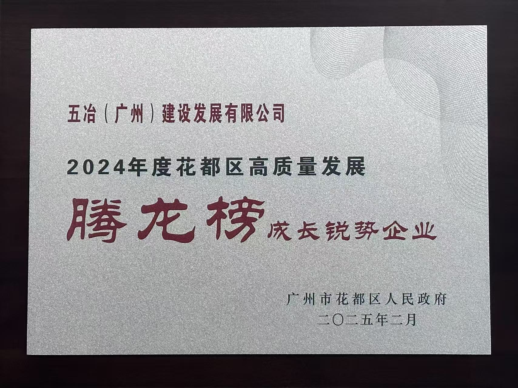 2月7日,廣州市花都區(qū)召開2025年高質量發(fā)展大會,對一批2024年高質量發(fā)展企業(yè)進行表彰,五冶(廣州)建設發(fā)展有限公司榮獲“騰龍榜成長銳勢企業(yè)”稱號。