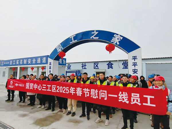 圖為春節(jié)期間,中國(guó)五冶集團(tuán)雄安國(guó)貿(mào)中心項(xiàng)目部慰問(wèn)一線員工。 (中國(guó)五冶集團(tuán) 供圖)