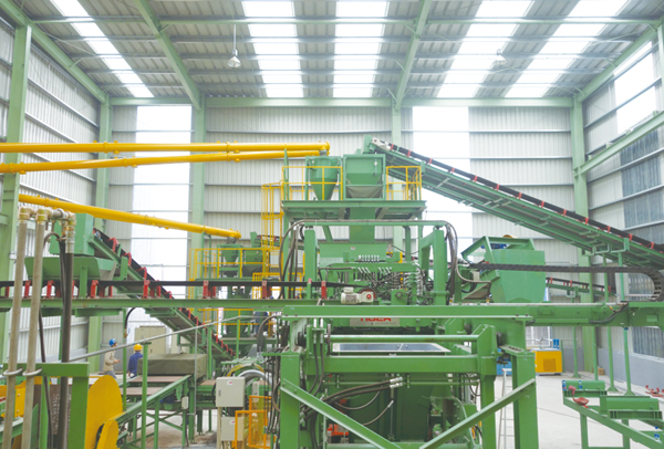 圖為中冶寶鋼鋼渣透水磚生產(chǎn)線。