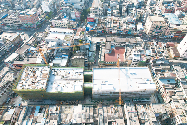 圖為中國(guó)五冶廣西都安瑤族自治縣新型城鎮(zhèn)化(一期)紅河農(nóng)貿(mào)市場(chǎng)改造工程項(xiàng)目航拍。(中國(guó)五冶集團(tuán) 供圖)
