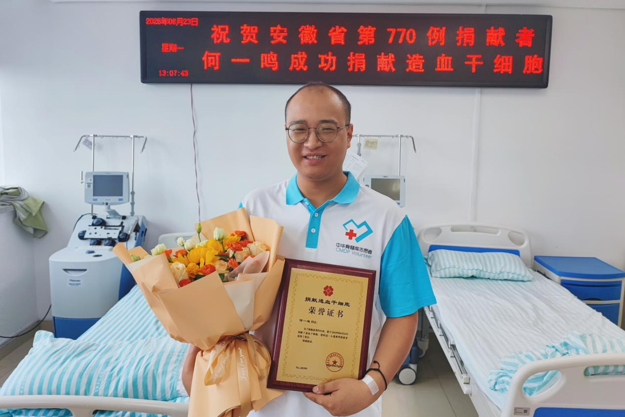 2023年,西安血庫緊缺AB型血,何一鳴在獻血時了解到造血干細胞捐獻可以挽救血液病患者的生命,但匹配成功率僅有十萬分之一。本著“萬一我的造血干細胞能救人一命呢?”的想法,他主動報名留取血樣,加入了中華骨髓庫,成為一名造血干細胞捐獻志愿者。