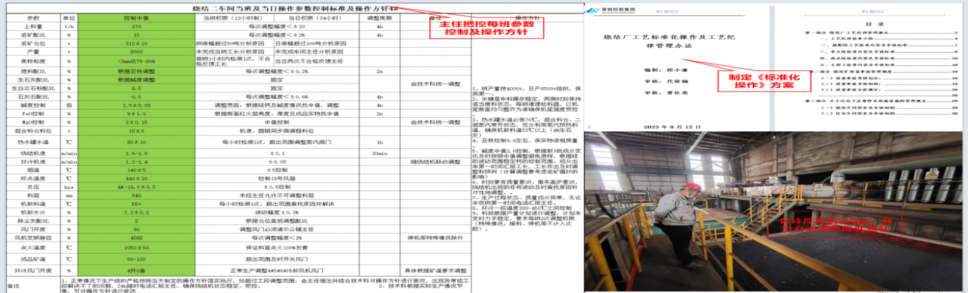 強化燒結操作穩定性:制定日參數控制及操作方針標準卡,主任進行把控,嚴格按操作方針執行操作,改善過程穩定性。