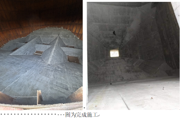該整體造襯技術:是將高強耐磨料通過濕法噴注或者支模澆筑工藝進行施工,通過錨固網片形成的整體造襯技術,同時,采用專用無機界面處理基材,可保障界面不受溫度、濕度等環境因素的影響,施工完成后,采用表面護理材料,可以提高內襯工作面的致密性、耐磨性,很好地實現抗磨損、抗沖擊等功能需求。(聯合榮大專家組)