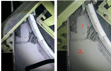 圖為造球機(jī)內(nèi)壁材料堆積