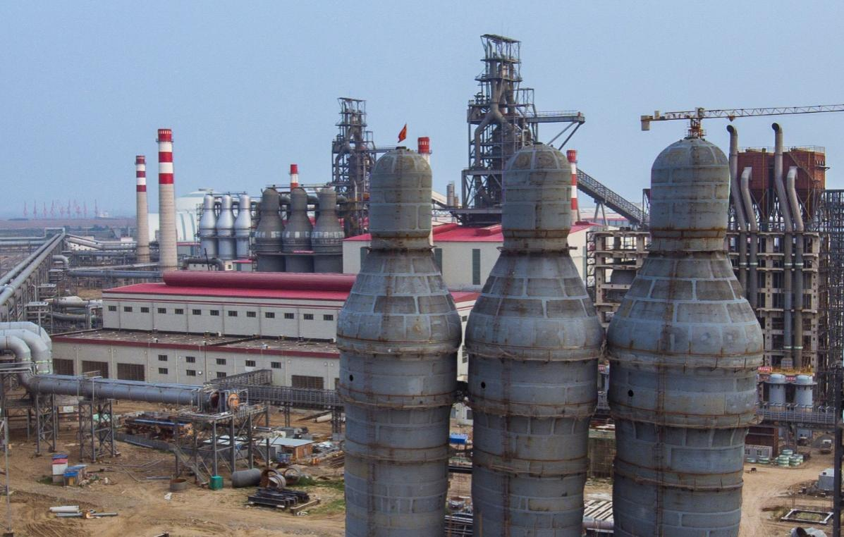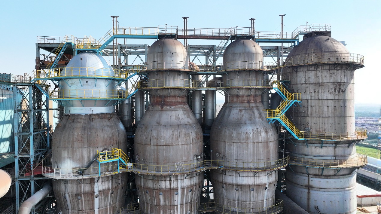 圖為河鋼集團樂亭鋼鐵公司新建4座2922m3高爐12座采用豫興四段式頂燃式熱風爐技術的熱風爐群
